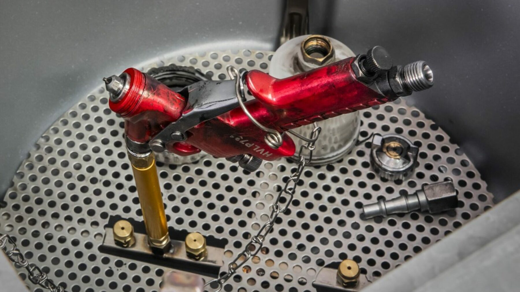 Automatic spray gun cleaners save operator time and reduce exposure to solvents but automating the process. Not only is it quicker, safer, and easier, but it saves a lot of money on solvent which gets reused rather than just sprayed into the back of the spray booth.