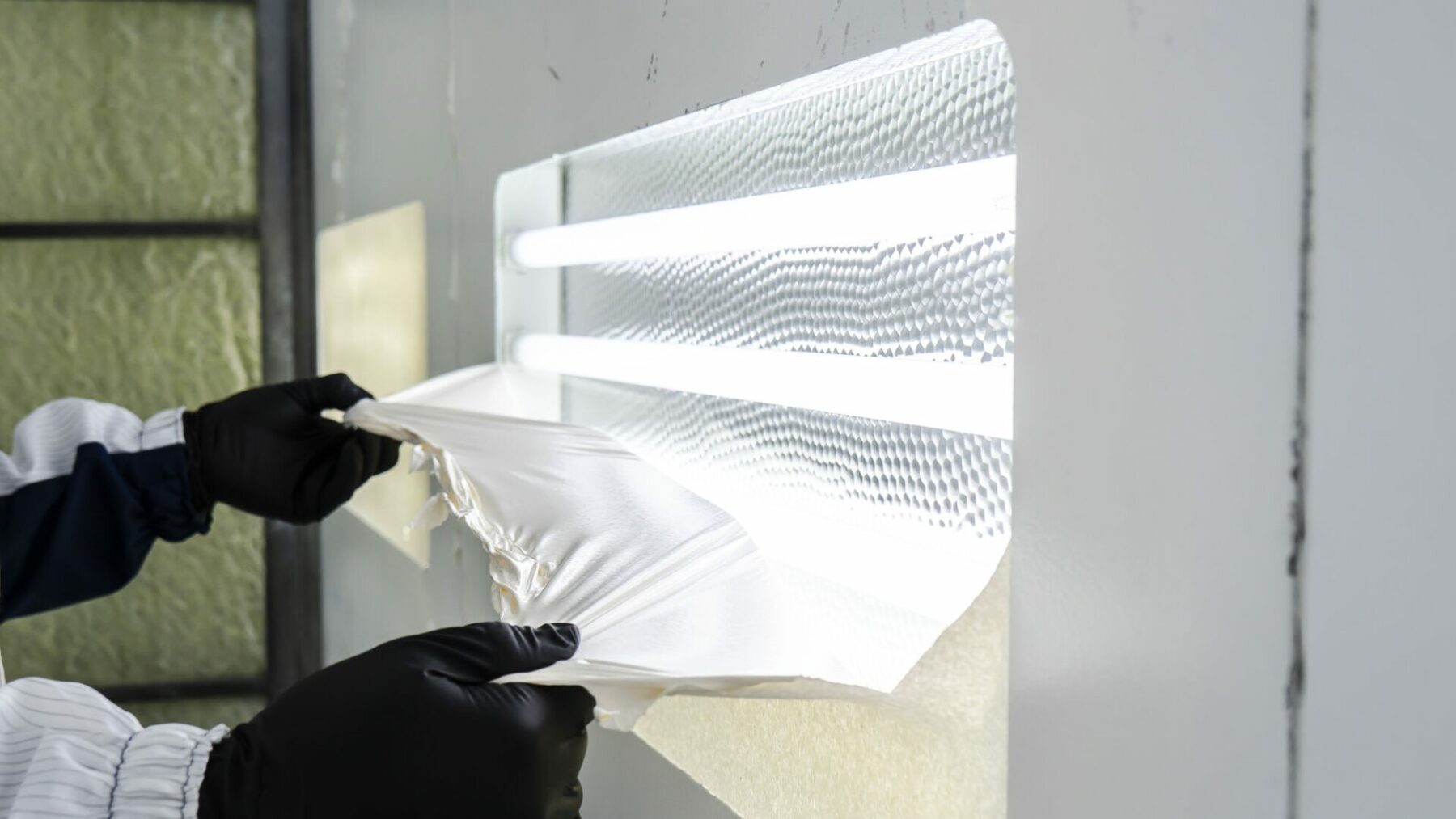 Multi-layer wall coatings like BAXT WP10 are made up of several layers of protective films laminated together. They’re applied in a single application (like a wallpaper) and when the top surface is contaminated, it’s simply peeled off revealing the clean surface underneath. Ideally applied to brand new spray booths before use.