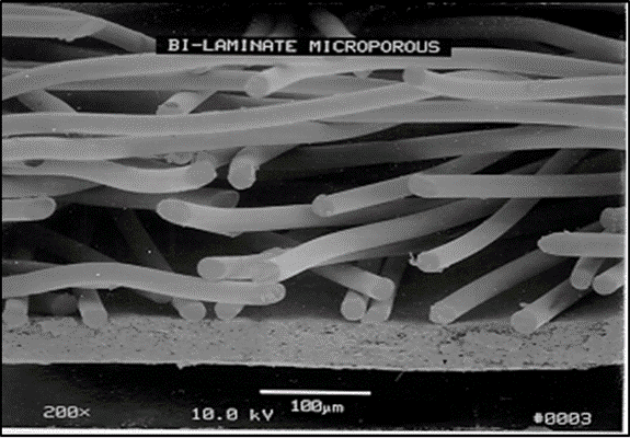 The below image shows the BAXT C7 fabric, which is highly breathable due to the ample space between the fibres. This structure allows air to pass through easily while maintaining a sealed surface for maximum protection.