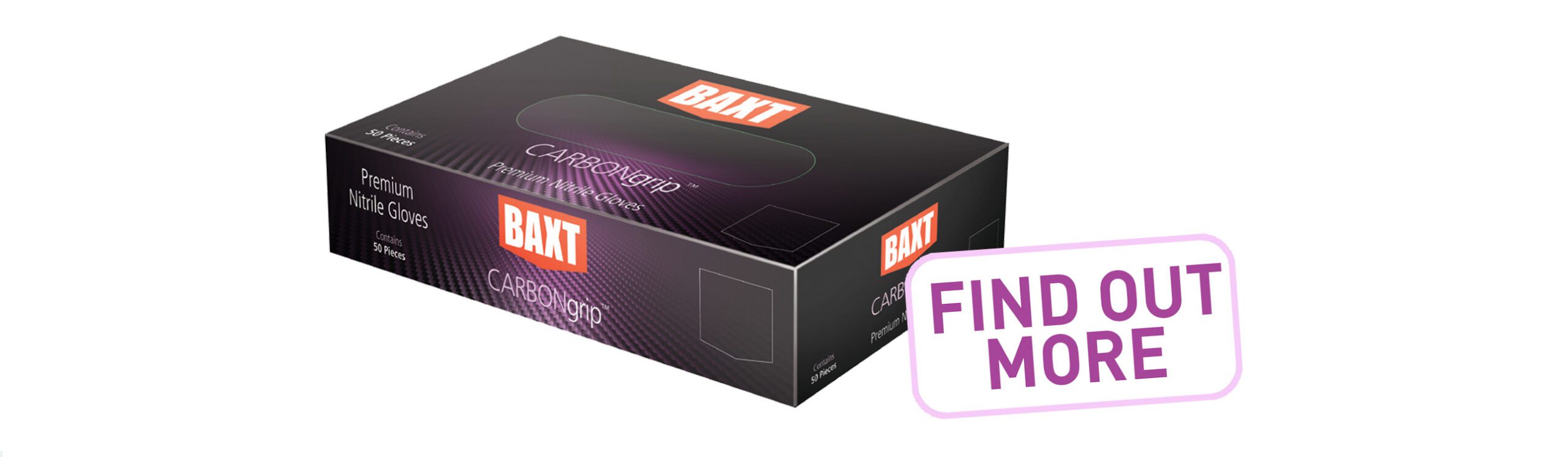 Powder free and solvent resistant, the specially formulated BAXT CARBONgrip Premium Nitrile Gloves are robust and resilient to chemicals, proving stronger and more durable than standard disposable gloves.