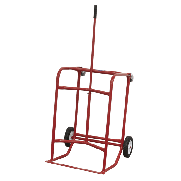 Allows safe storage of 205ltr drums in the horizontal position for quick dispensing of contents, and the radiused frame helps up-end drums. Highly manoeuvrable on two heavy-duty rubber tyres and two castors and fitted with rubber hand grip.