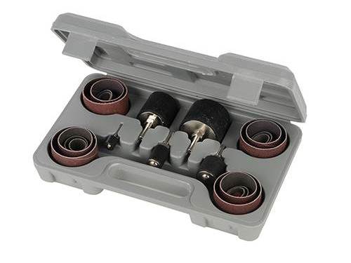 25 piece drum sanding kit, from 13 mm to 15mm. Supplied with sanding sleeves. for use with power drills and supplied in a handy carry case.