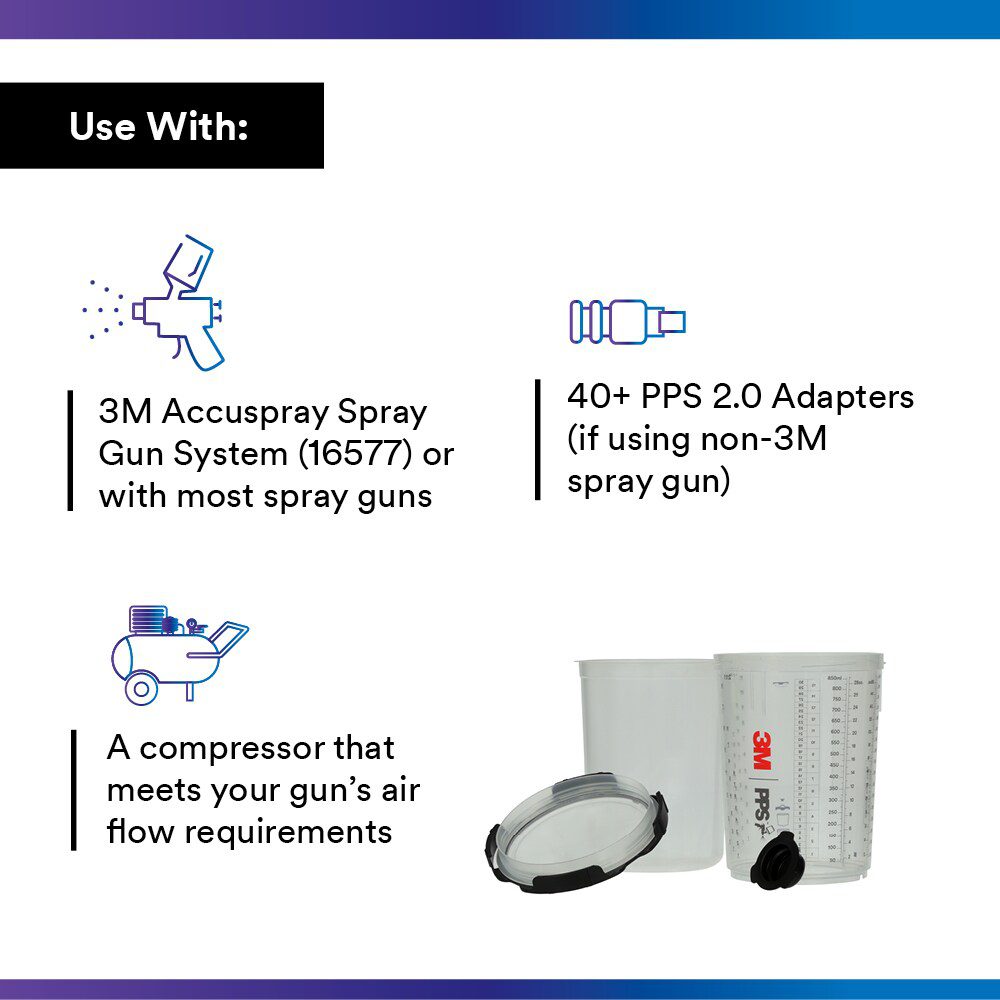 - 3M's Cleanest Disposable Cup System: 3M™ PPS™ Series 2.0 is a complete disposable spray cup solution for mixing/measuring, filtering, and spraying