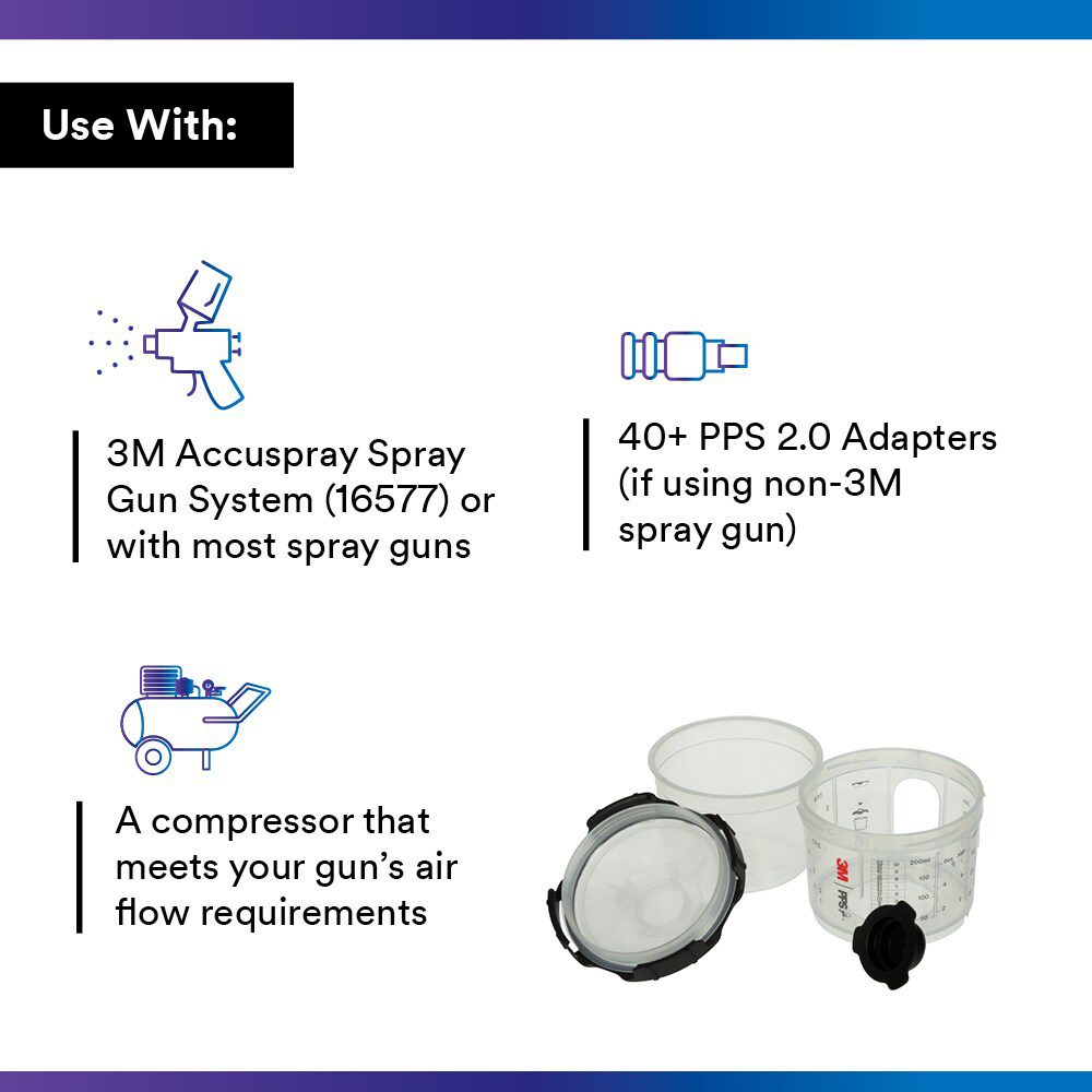- 3M’s Cleanest Disposable Cup System: 3M™ PPS™ Series 2.0 is a complete disposable spray cup solution for mixing/measuring, filtering, and spraying