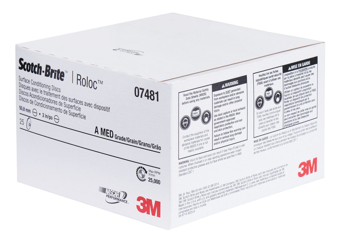 The 3M Roloc Surface Conditioning Disc is a surface conditioning disc that combines an aggressive abrasive and 3M Roloc quick-change attachment system. The non-woven disc uses aluminium oxide mineral abrasive offering a continuous fast cutting action and consistency. The fibre construction conforms well to help preserve irregular or contoured surfaces. Suitable for a variety of general-purpose metalworking applications from deburring and finishing.