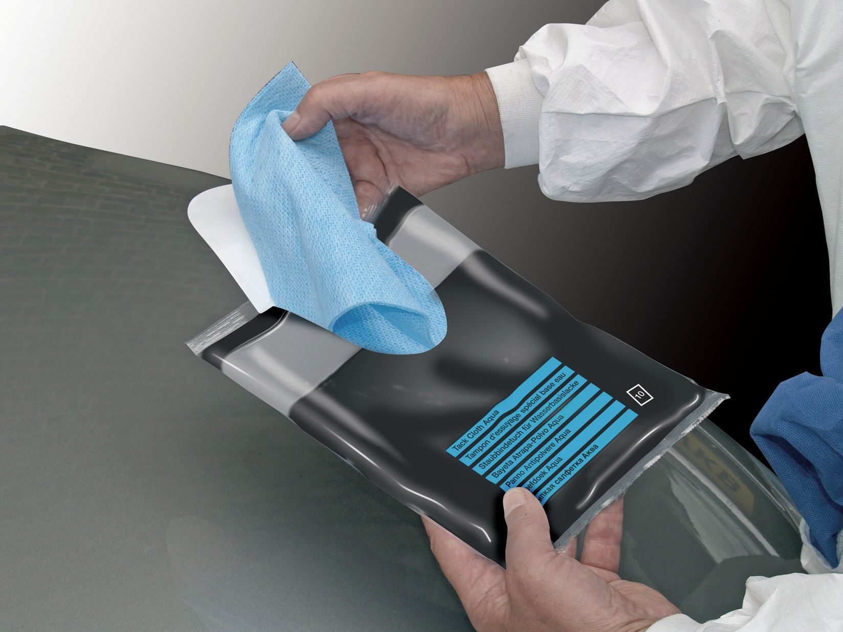 Cloths that use a 3-dimensional web structure to absorb dust particles prior to spraying. A wall mounted dispenser is available to store both new and partly used cloths