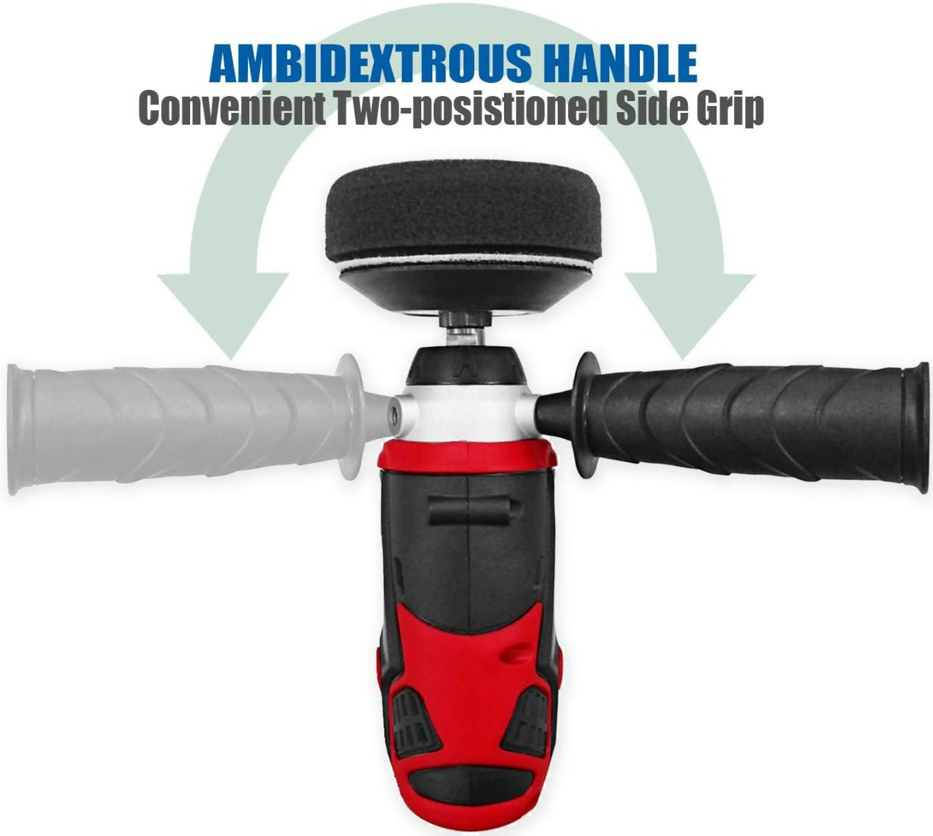 The tools’ convenient compact size is perfect for small area polishing, it also has a convenient two position side handle for easy and safer operation.