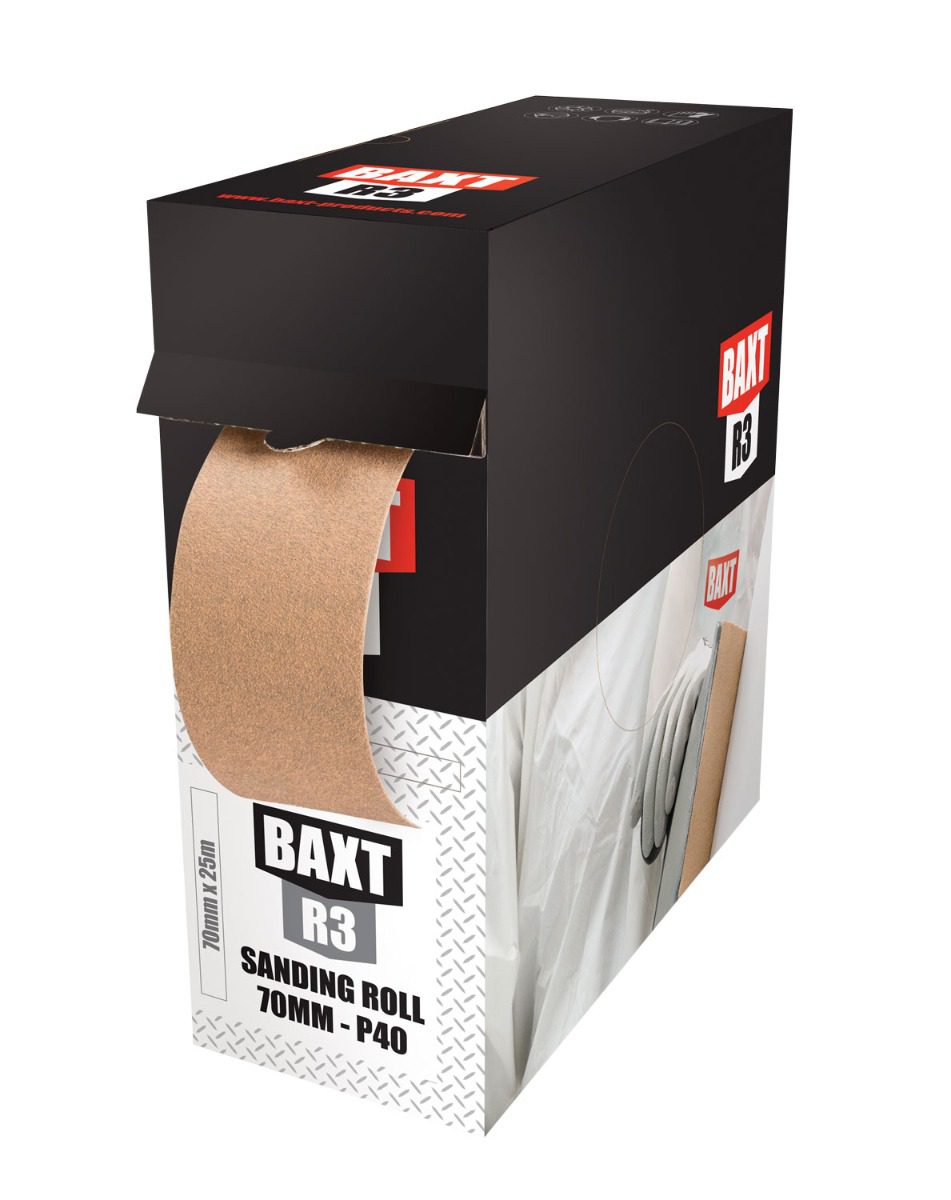 Shop » Abrasives » Hand Sanding » Rolls » Velcro Rolls » BAXT R3 77mm Velcro Abrasive Roll (25m)