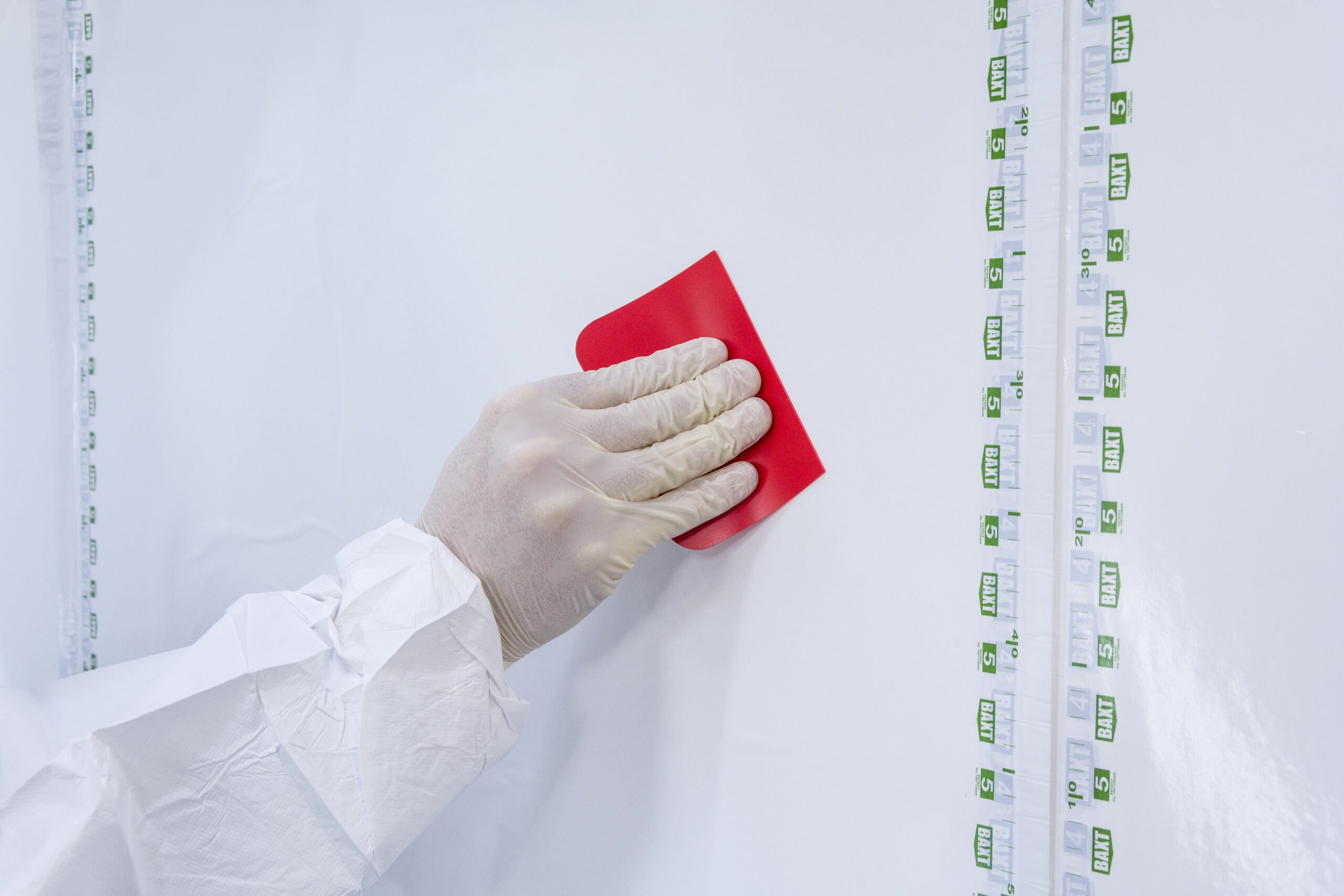 The Baxt LAYERSHIELD WP10 5-Layer Spraybooth Protection Film is a unique product designed to fully protect spraybooth interior walls from dust, dirt and overspray. It is self-adhesive and does not require tape or magnets to secure in place. The statically charged, tacky surface attracts paint overspray away from the operating area and the film provides a bright white workspace, idea for highlighting imperfections and improving quality control. WP10’s insulating properties help to reduce booth heat loss which in turn reduces cost. The layered design means a layer can be easily and rapidly removed, providing a fast refresh with each of the 5 layers.