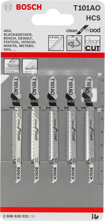 Shop » Drilling & Cutting » Power Tool Accessories » Cutting Blades » Bosch T101AO Clean Cut for Wood Jigsaw Blade (Pack of 5)