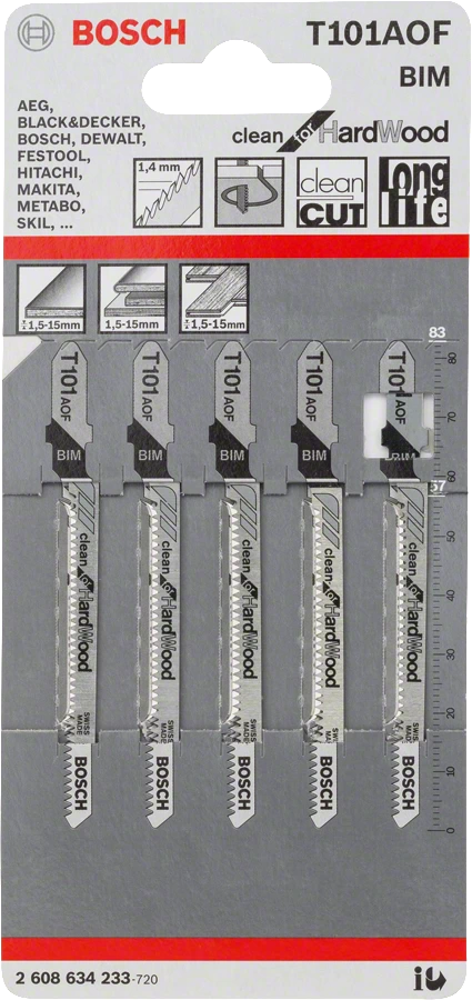 Bosch T101AOF Clean Cut for Hard Wood Jigsaw Blade (Pack of 5)