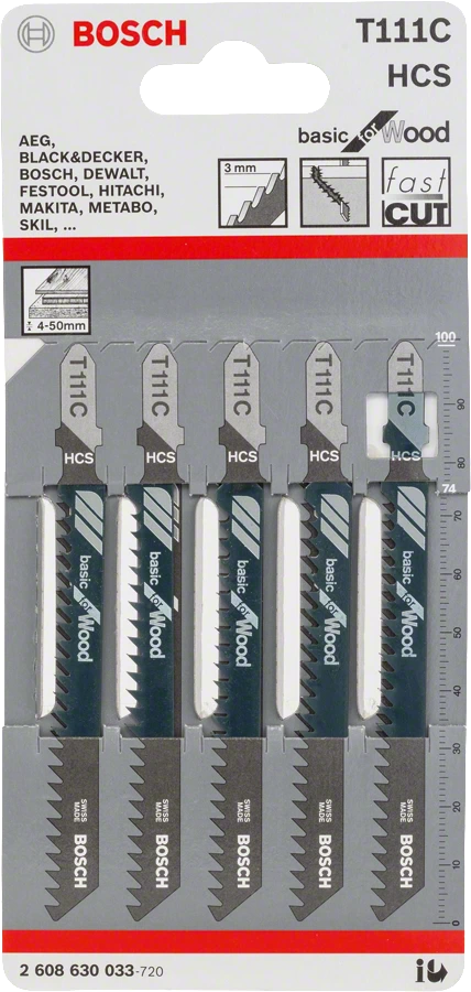 Basic for Wood Jigsaw Blade delivers straight cuts in wood. Milled, side-set teeth are ideal for cuts without special requirements. High carbon steel blade material is appropriate for cutting softwood and non-abrasive woodworking materials. Fits all T-shank jigsaws. Pack of 5.