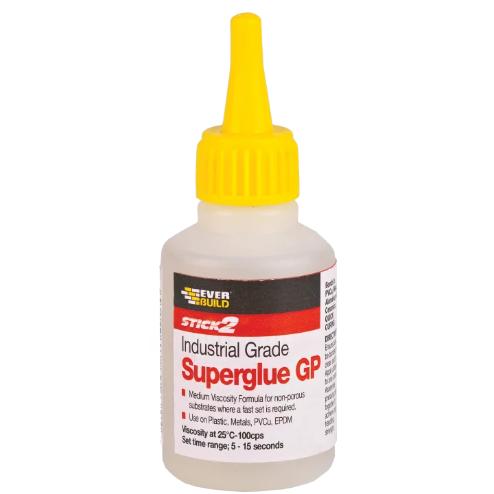 Everbuild Stick 2 Industrial Grade Superglue GP is a medium viscosity flash setting industrial grade adhesive based on advanced cyanoacrylate technology, suitable for use on surfaces where fast set is required.