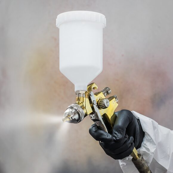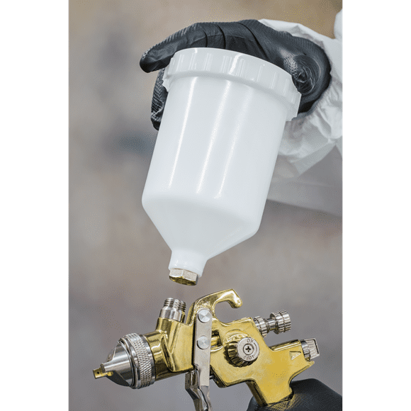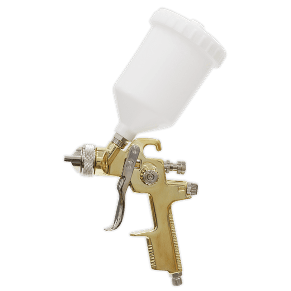 A general purpose spraygun for primer or finishing coats. Supplied with a 1.4mm fluid nozzle and 0.6ltr plastic gravity feed pot. Suitable for use with water and solvent based paints.
