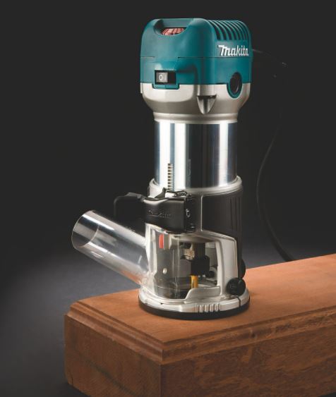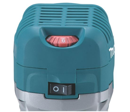Makita Router Trimmer 110V - A compact, powerful router trimmer with a high quality, solid aluminium body. Lightweight tool offers greater flexibility and is ideal for trimming, edge forming, slot cutting, decorative work and many other uses. The Makita Router Trimmer 110V is supplied with wrenches and guides - wrenches (13 and 22mm), trimmer guide, straight guide and ¼"-3/8" collet cone.