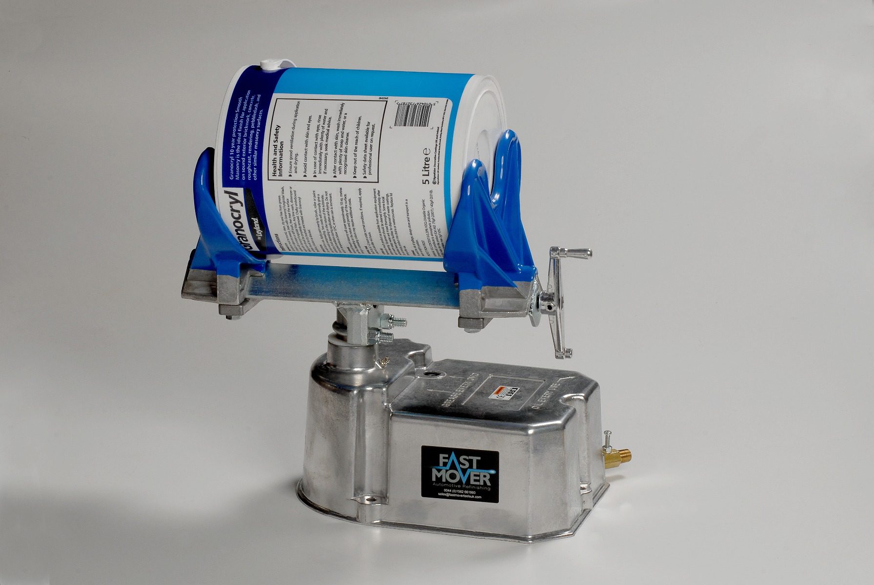 Air operated bench-mounted paint shaker, adjustable so will take 500ml to 5 ltr cans. Simply mount the can of paint on the shaker, switch it on and within minutes the paint will be perfectly mixed. This tool will save you hours and lots of energy and ensure you get a perfect mix every time.